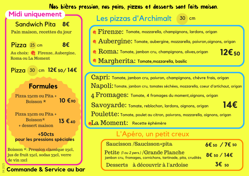 Pour compléter notre offre, nous vous proposons aussi d'appétissantes pizzas!